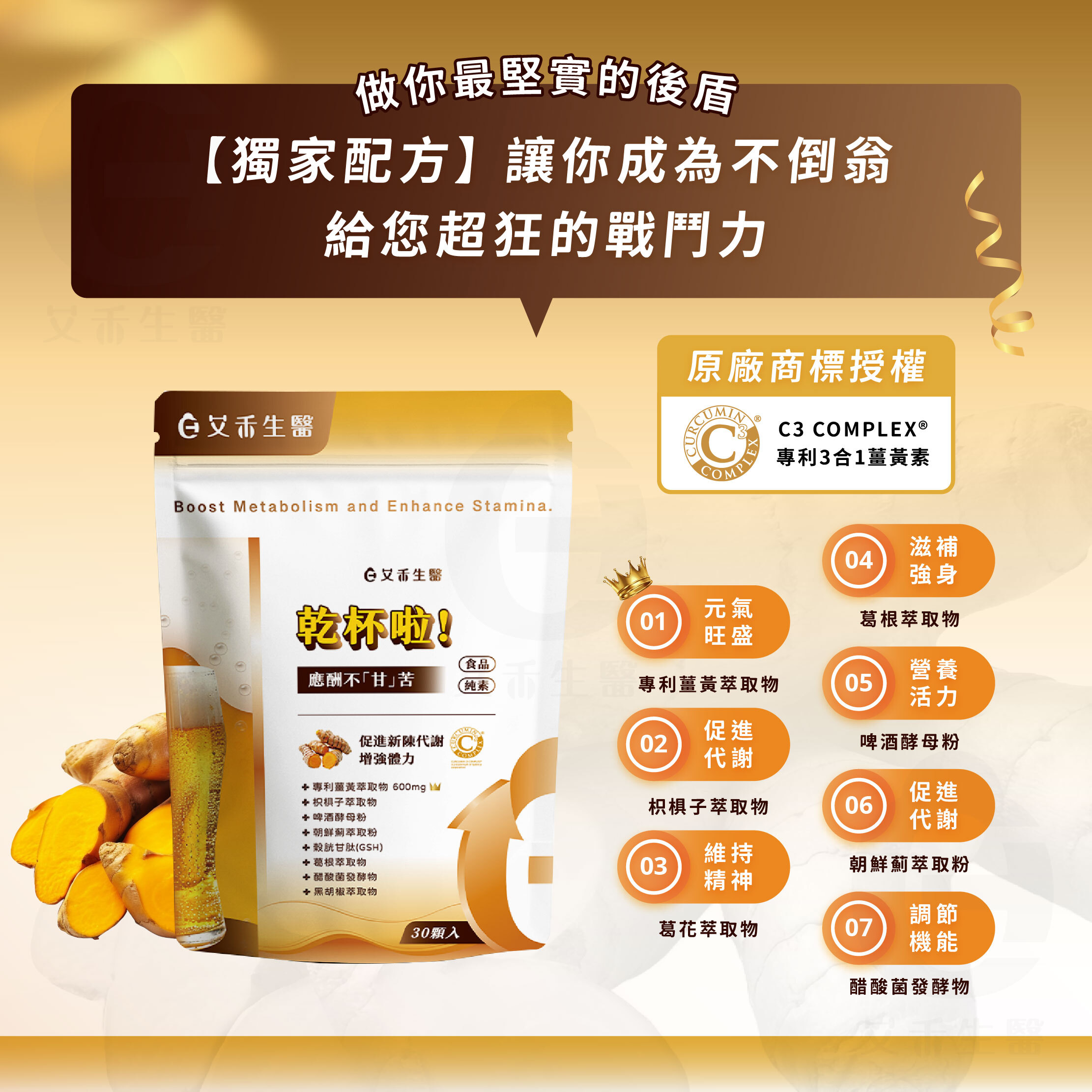 ▪ Curcumin C3 Complex® 專利 C3 薑黃萃取物 - 薑黃素含量高