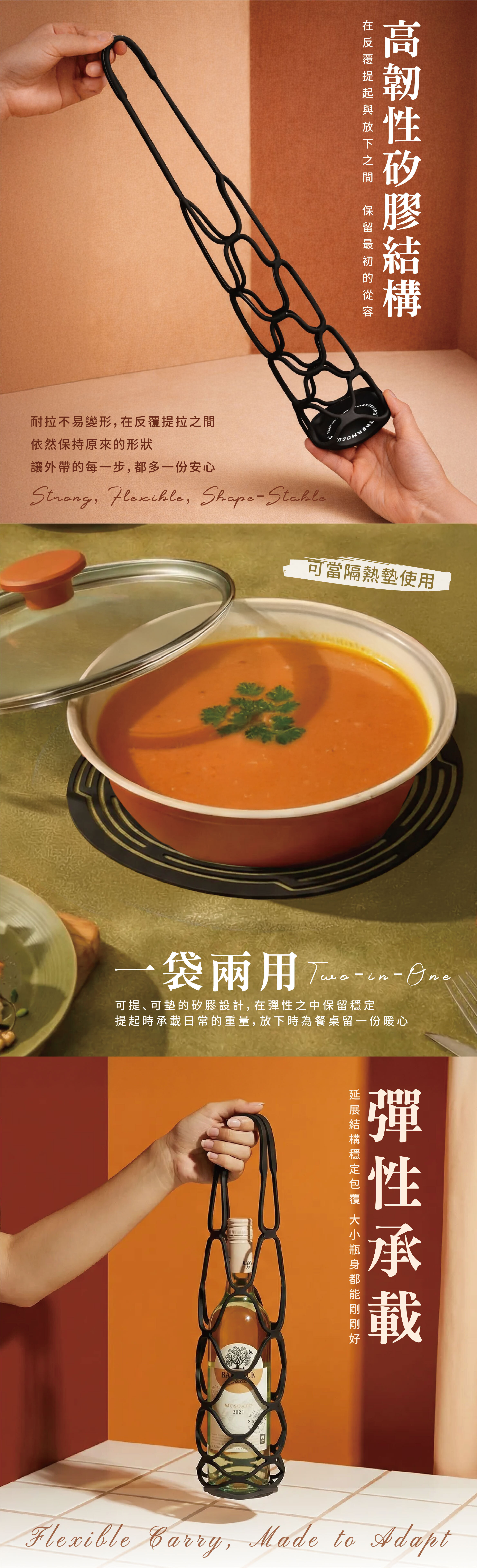 ▪ 彈性網繩設計,牢牢包覆杯身。